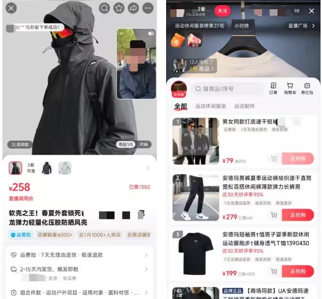 夏天到了,主播在镜头前展示一堆大牌男款T恤——始祖鸟、安德玛、迪桑特,LOGO闪瞎眼。价格只要一两百,销量更离谱:4000粉账号,橱窗出了5000多件;7000粉账号,直接卖7000多件。直播间常年只有个位数在线,却咔咔出货。