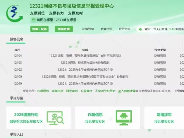 浏览器收藏「12321 受理中心」——骚扰电话、垃圾短信、轰炸式呼叫全能管。